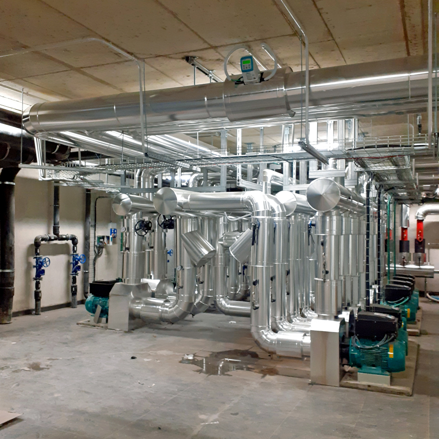 Situata nel secondo livello ipogeo, la centrale termofrigorifera provvede alla produzione centralizzata dei fluidi termovettori ed è composta da tre diversi generatori, tutti con­densati ad acqua di falda: