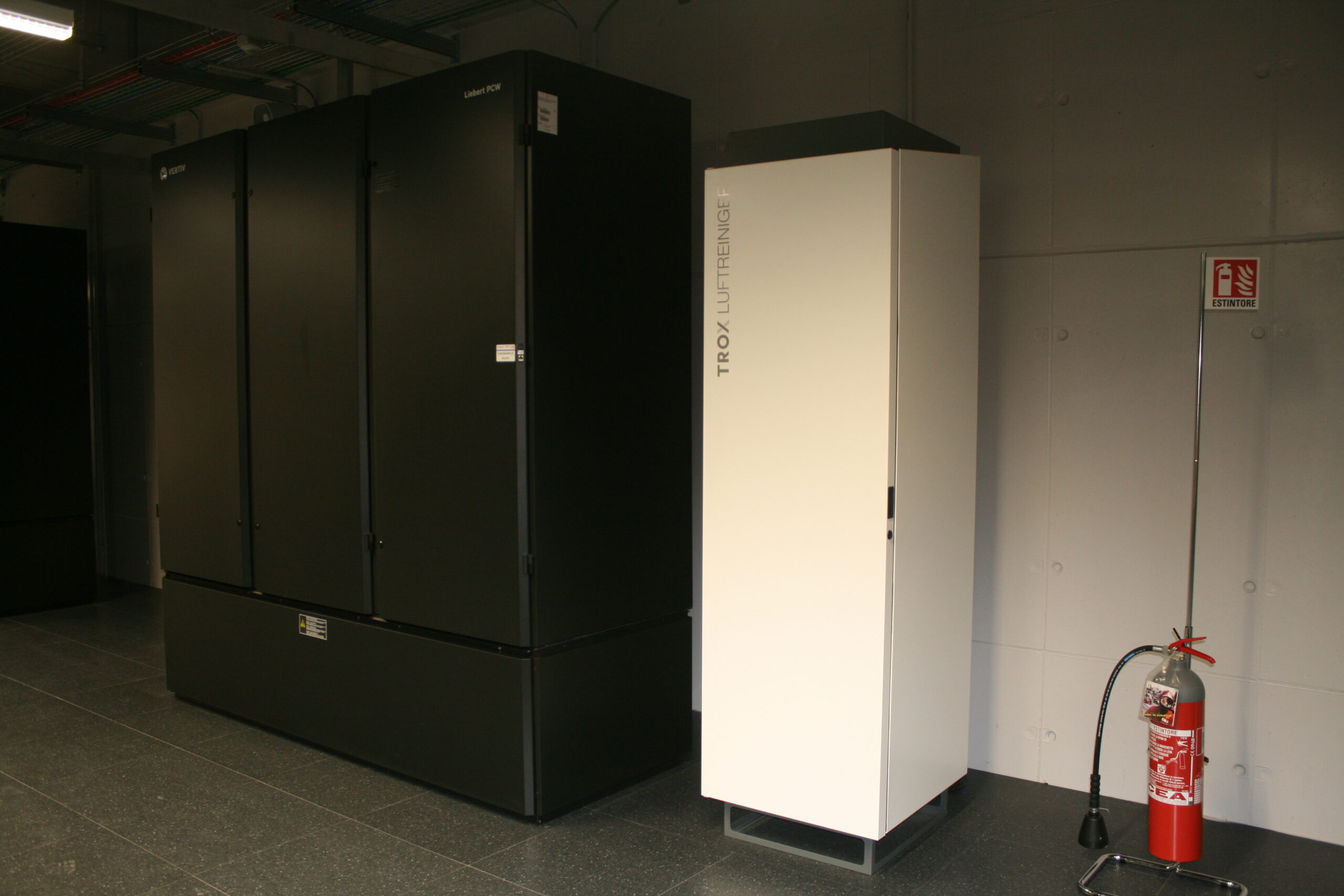 - 115 kW; portata aria 40.000 m3/h; T aria: 22,5 °C (mandata), 31 °C (ripresa); U.r. aria ripresa 30% (trasformatori/UPS);