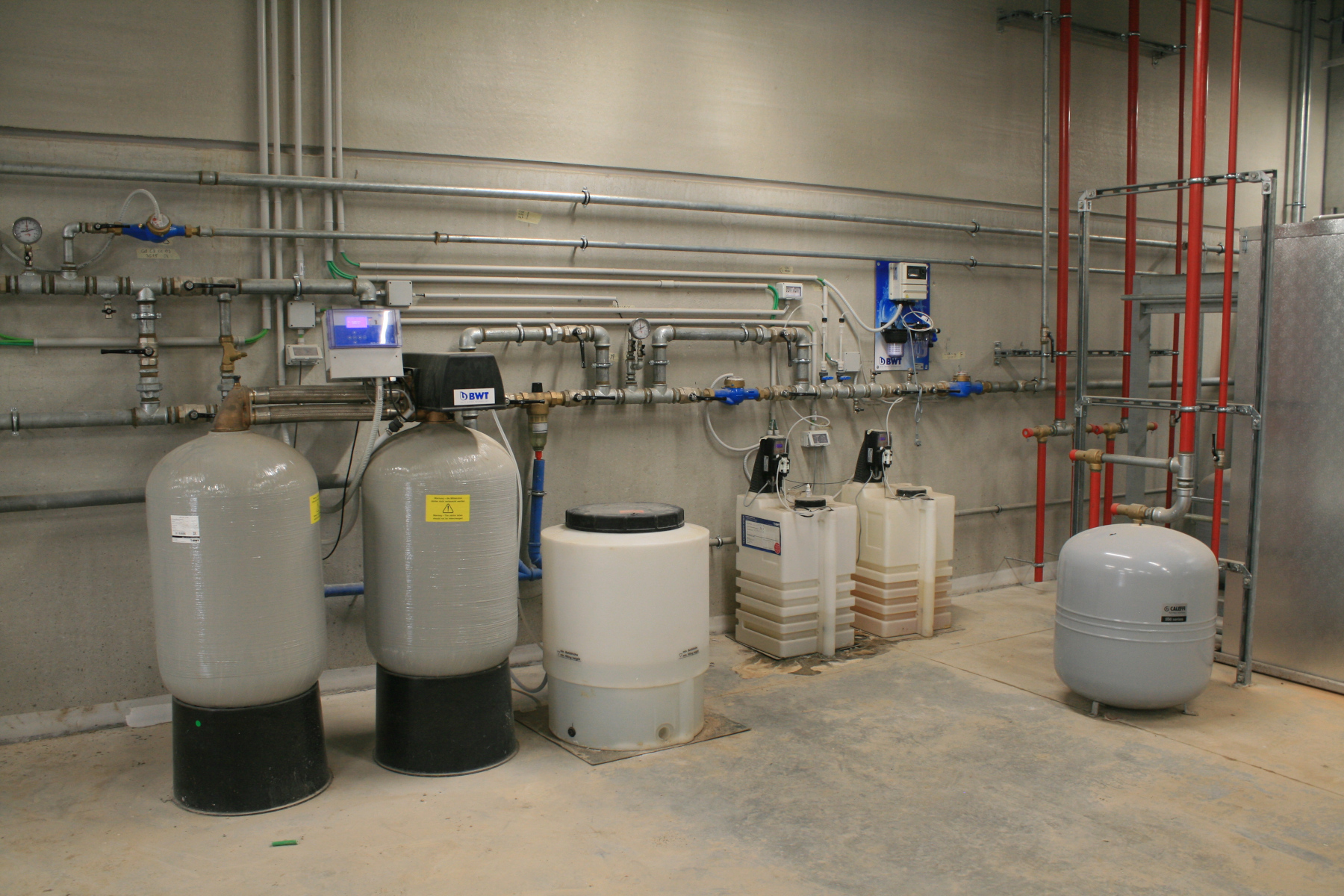 - filtrazione, addolcimento (10 °Fr), dosaggio combinato di alghicida, antincrostante ed anti-legionella, per l’alimentazione dei dry cooler;