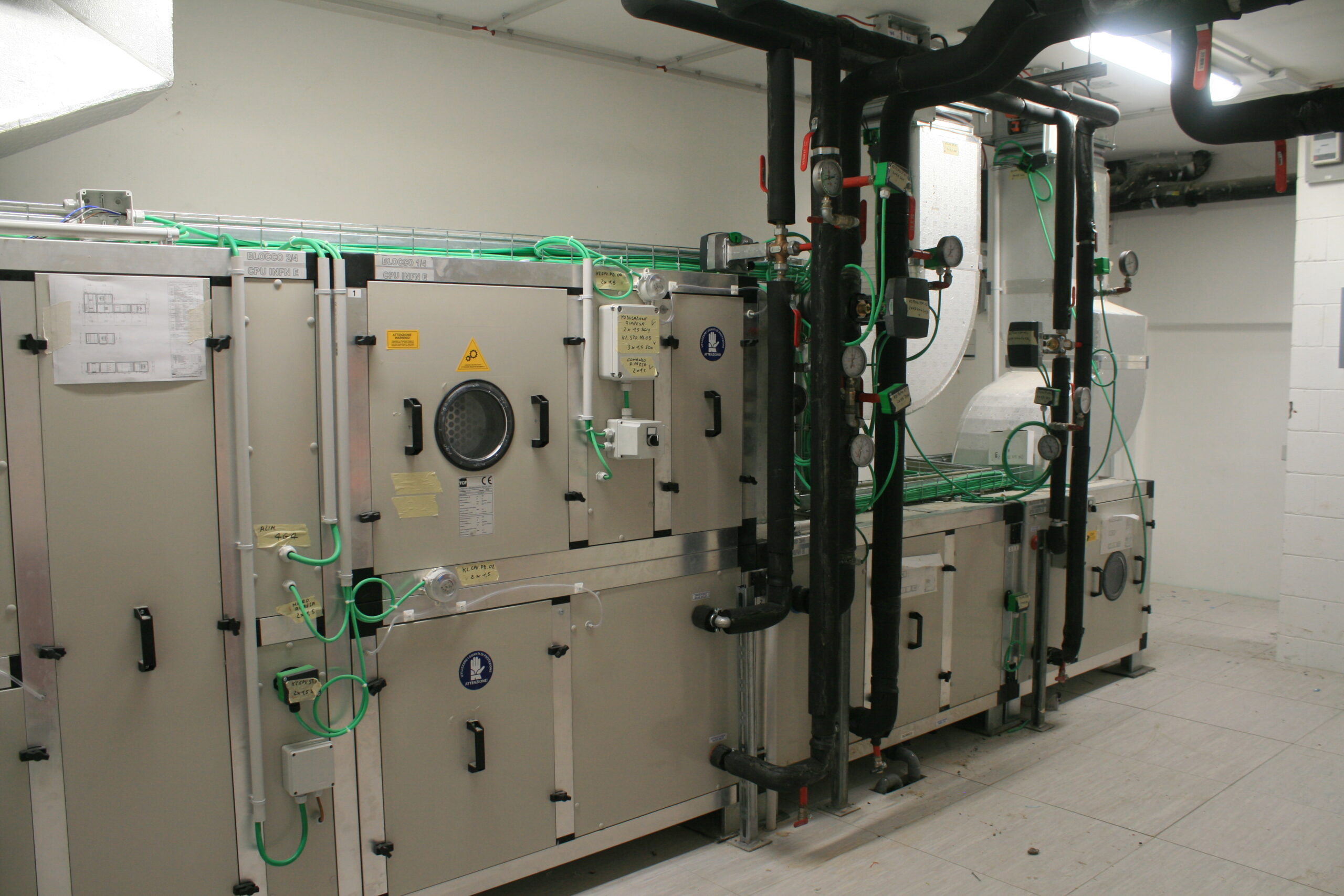 - batterie di raffrescamento, alimentate dal circuito secondario del chiller; umidificatore a pacco evaporante. A ogni locale e garantito un ricambio igienico pari a 0,5 vol/h e il controllo dell’umidita interna.