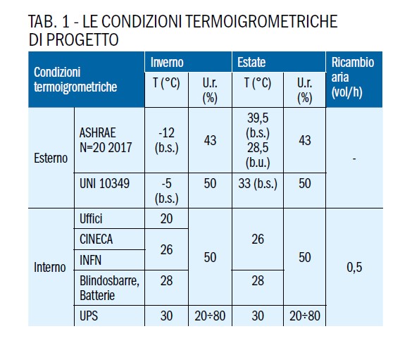 - totale ispezionabilità delle apparecchiature. I valori critici previsti da ASHRAE N=20 2017, oltre a quelli previsti da UNI 10349 (zona climatica E; gradi giorno 2.259), sono stati assunti quali condizioni termoigrometriche esterne di progetto (tabella 1).