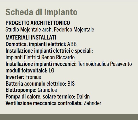 «Lavoriamo spesso per conto della società immobiliare dell’arch. Mojentale – afferma Riccardo Renon, titolare dell’impresa di installazione Impianti Elettrici Renon Riccardo di Piovene Rocchette (Vicenza). In questo caso il progetto impiantistico è risultato particolarmente evoluto ed estremamente sostenibile, una vera e propria “opera unica” nel suo genere. Ci siamo occupati di tutta l’impiantistica elettrica e speciale, compresa la parte domotica, lavorando a stretto contatto con ABB per la messa a punto dei cablaggi finalizzati all’integrazione del PLC e della relativa programmazione. Complessivamente siamo stati impegnati circa 4 mesi non continuativi, senza incontrare particolari problematiche, e siamo molto soddisfatti del lavoro compiuto».