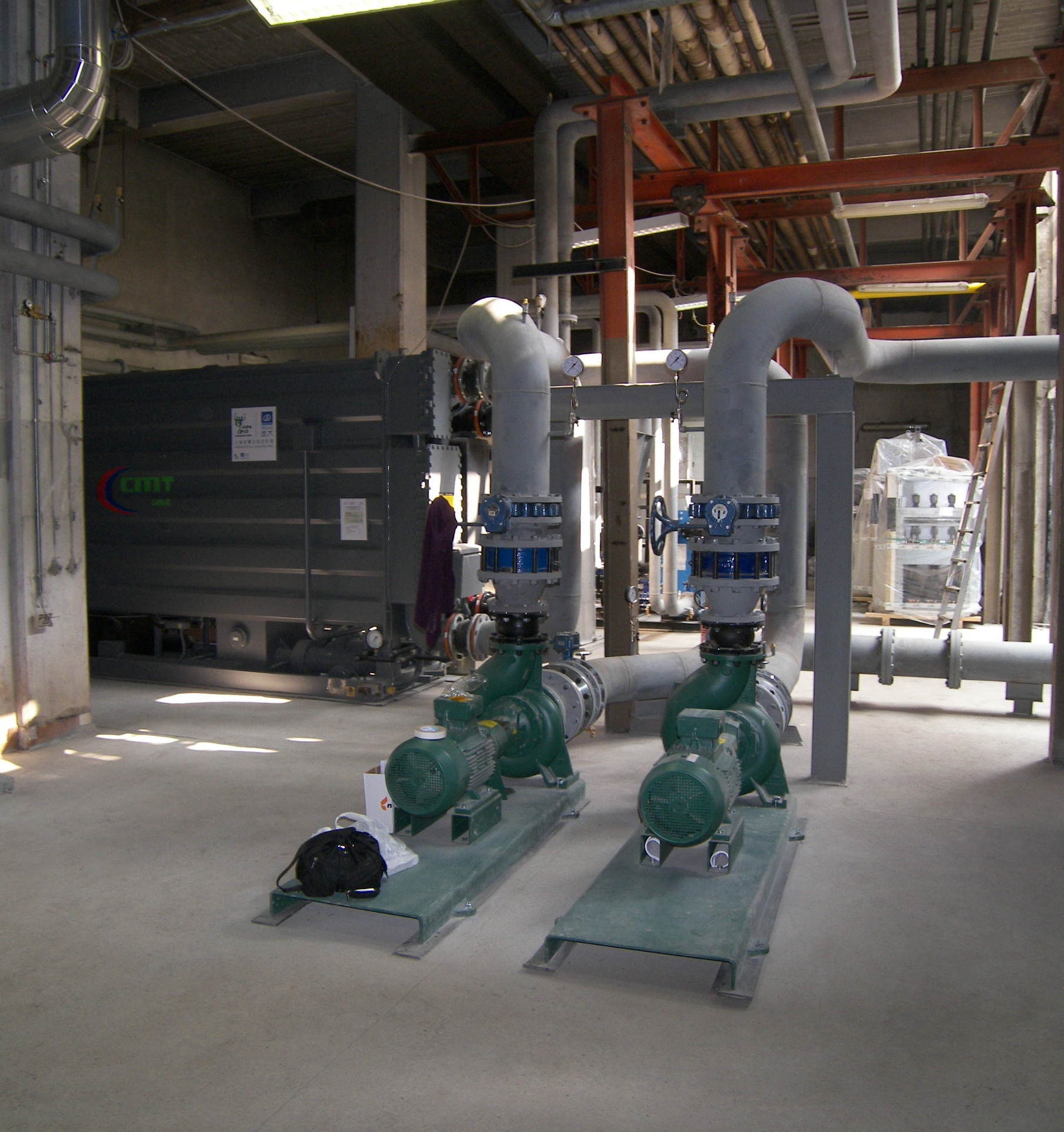 – 3 caldaie a condensazione a gas metano (945 kW ciascuna), in sostituzione dei preesistenti generatori di calore a gasolio, con trasformazione dell’impianto da acqua surriscaldata ad acqua calda; è stata inoltre mantenuta una caldaia preesistente a gas, ad alto rendimento (1.400 kW di potenzialità utile);