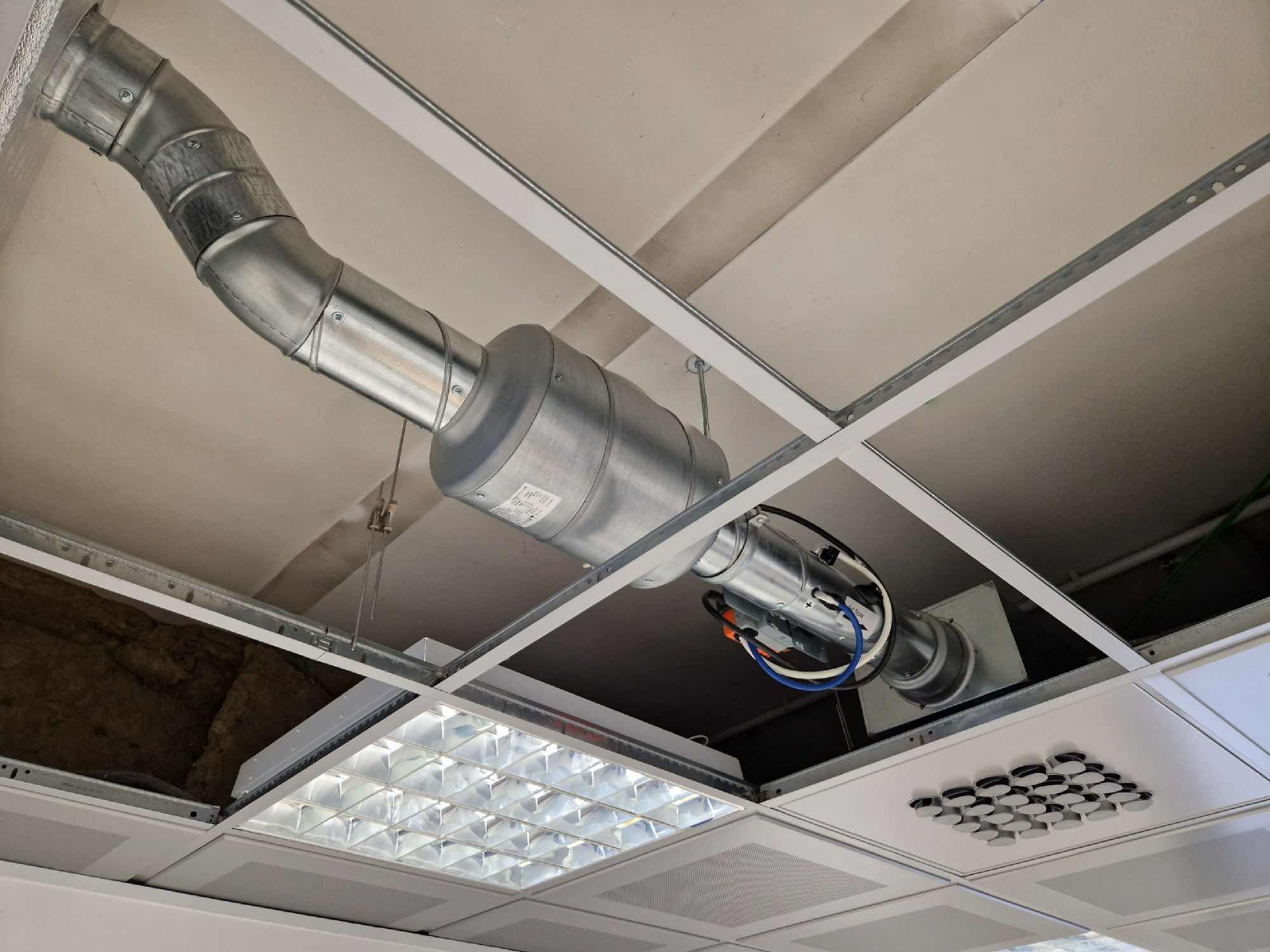 Progettato e realizzato durante la pandemia, l’impianto di ventilazione CAV provvedeva a un ricambio dell’aria ben superiore al necessario. La trasformazione in impianto VAV ha comportato un significativo contenimento dei consumi energetici. È il caso, ad esempio, dei ventilatori che, prima, assorbivano costantemente 0,6 kW all’ora, mentre adesso, in base all’occupazione dei locali, presentano consumi dell’ordine di 0,1÷0,2 kW.