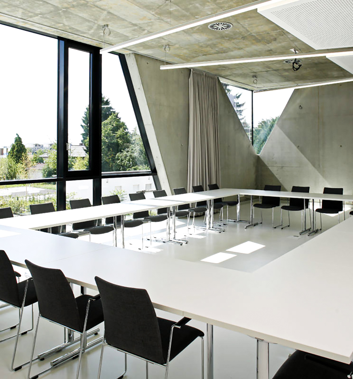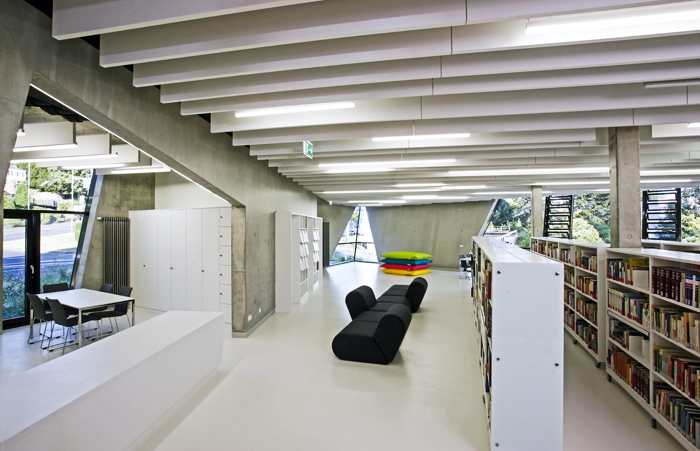 Nella cittadina tedesca di Gelnhausen, nei pressi di Franco­forte, è stato realizzato un edificio multifunzionale di oltre 2000 m2 a servizio del ginnasio Grimmelhausen (figura 1). Al piano interrato si trova la caffetteria, con 430 m2 di superficie uti­le per 180 persone, oltre allo spazio cucina e ai locali tecnici. Il piano terra è invece destinato alla biblioteca (figura 2) con una superficie di 420 m2 e a una sala multifunzionale, che rappresen­tano un invito all’apprendimento e alla lettura.