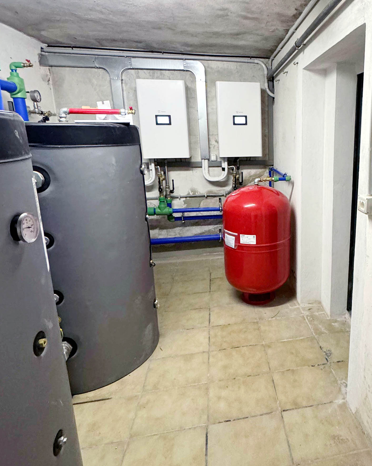 In questo modo le reti dispongono di una doppia alimentazione che mantiene l’anello d’acqua a 32÷33 °C (inverno) e a 25 °C (estate), con qualsiasi temperatura dell’aria esterna e in ogni condizione operativa. Gli stessi circuiti alimentano anche i radiatori situati nei bagni delle camere, alcuni dei quali sono stati sostituiti con modelli di potenza adeguata.