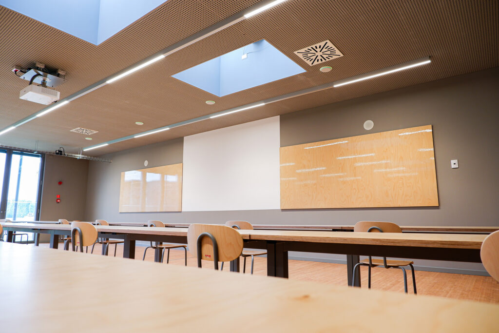 Per ciascuno degli edifici del campus, la selezione dei terminali idronici e delle soluzioni per la ventilazione meccanica è stata compiuta considerando principalmente gli aspetti energetici e il comfort degli utenti, con l’obiettivo di dotare i singoli locali degli impianti di climatizzazione più adatti alle diverse attività.