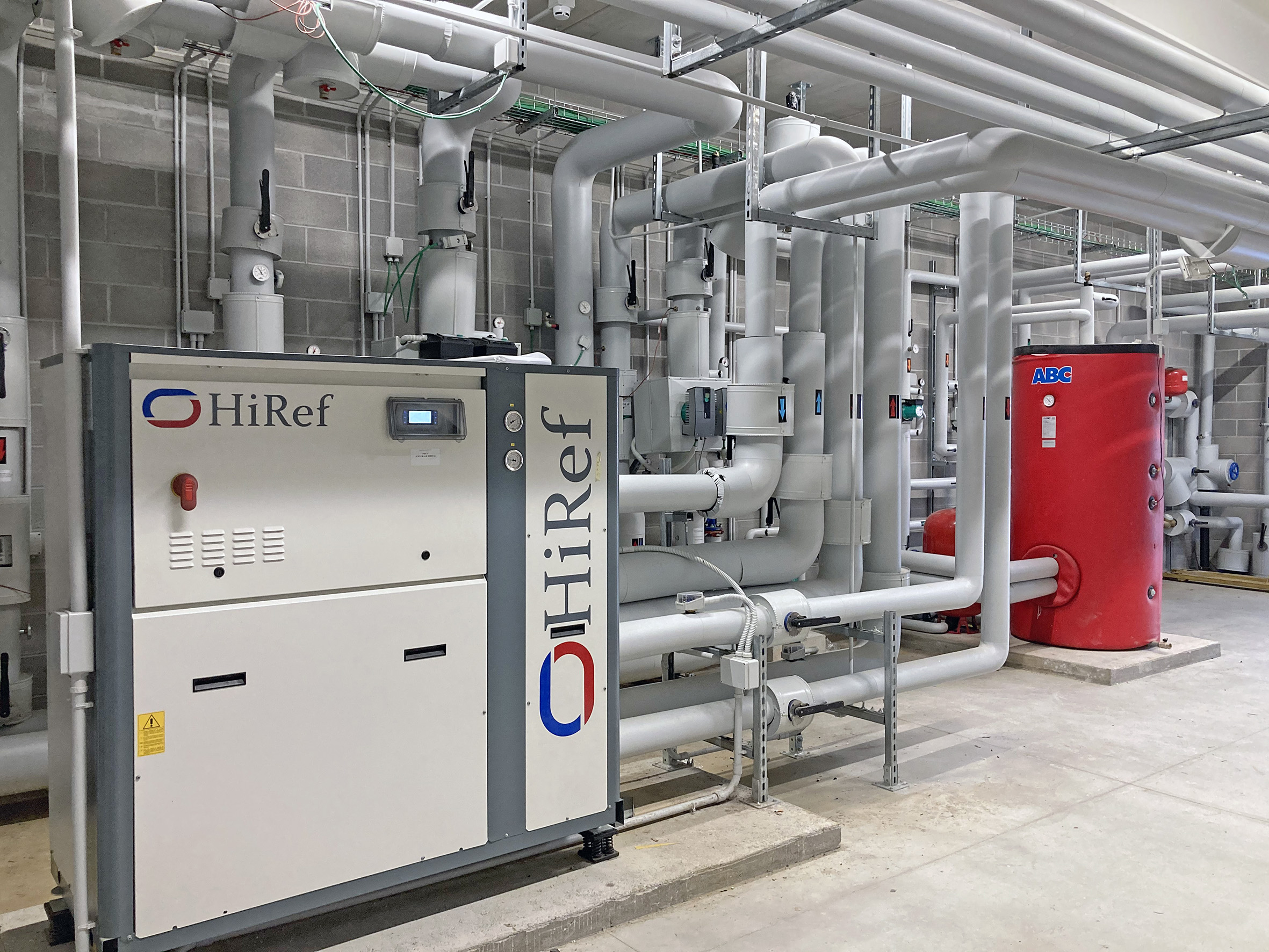 In generale, le pompe di calore fronteggiano la domanda termica di base, alimentando con i medesimi circuiti le superfici radianti a soffitto e a pavimento, i ventilconvettori, i radiatori e le batterie di postriscaldamento. L’ACS è prodotta mediante funzionamento a recupero totale, con conseguente abbattimento del calore da dissipare nel periodo estivo attraverso il campo geotermico.
