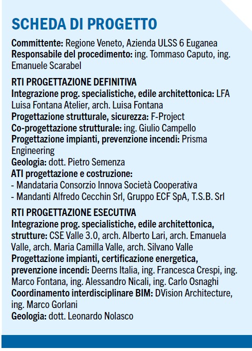 Centralità del paziente, raggruppamento di funzioni per affinità tecnologica e minimizzazione di complessità e costi di gestione sono i principi ispiratori del progetto avviato nel 2018, con una procedura concorsuale che ha permesso la valutazione di una pluralità di proposte alternative da parte dell’AULSS 6 Euganea.