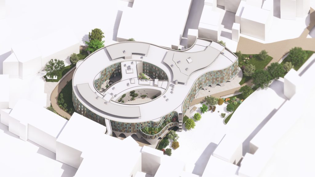 - un articolato sistema connettivo radiale/circolare che separa i flussi interni in orizzontale e in verticale e che, al contempo, collega l’edificio con il resto dell’ospedale;