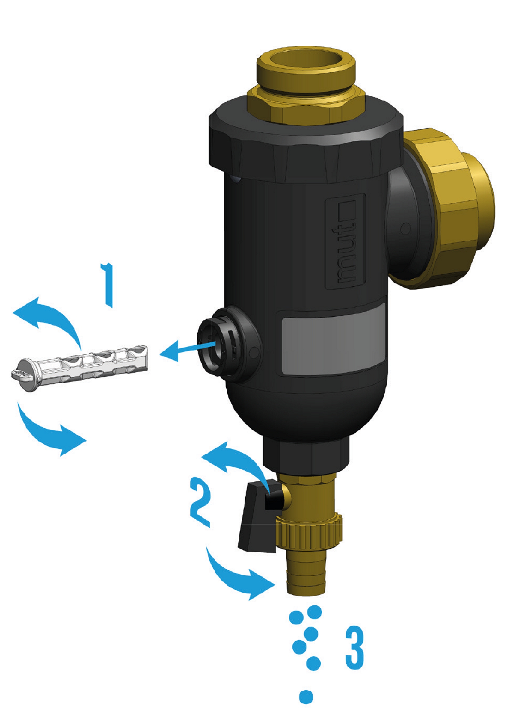 - Facilità di scarico impurità, anche ad impianto funzionante. Lo scarico delle impurità è effettuabile ad impianto funzionante, senza scollegare il prodotto dalle tubazioni