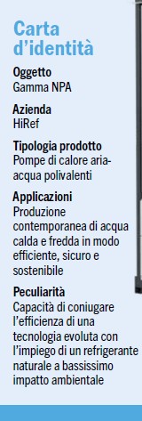 È in questa direzione che si colloca la gamma NPA di HiRef, una linea di pompe di calore aria-acqua polivalenti che utilizza refrigerante naturale R290 (propano), disponibile nelle versioni per impianti a 2 o 4 tubi. NPA è una delle soluzioni più avanzate e versatili oggi disponibili sul mercato, capace di produrre contemporaneamente acqua calda e fredda in modo efficiente, sicuro e sostenibile.