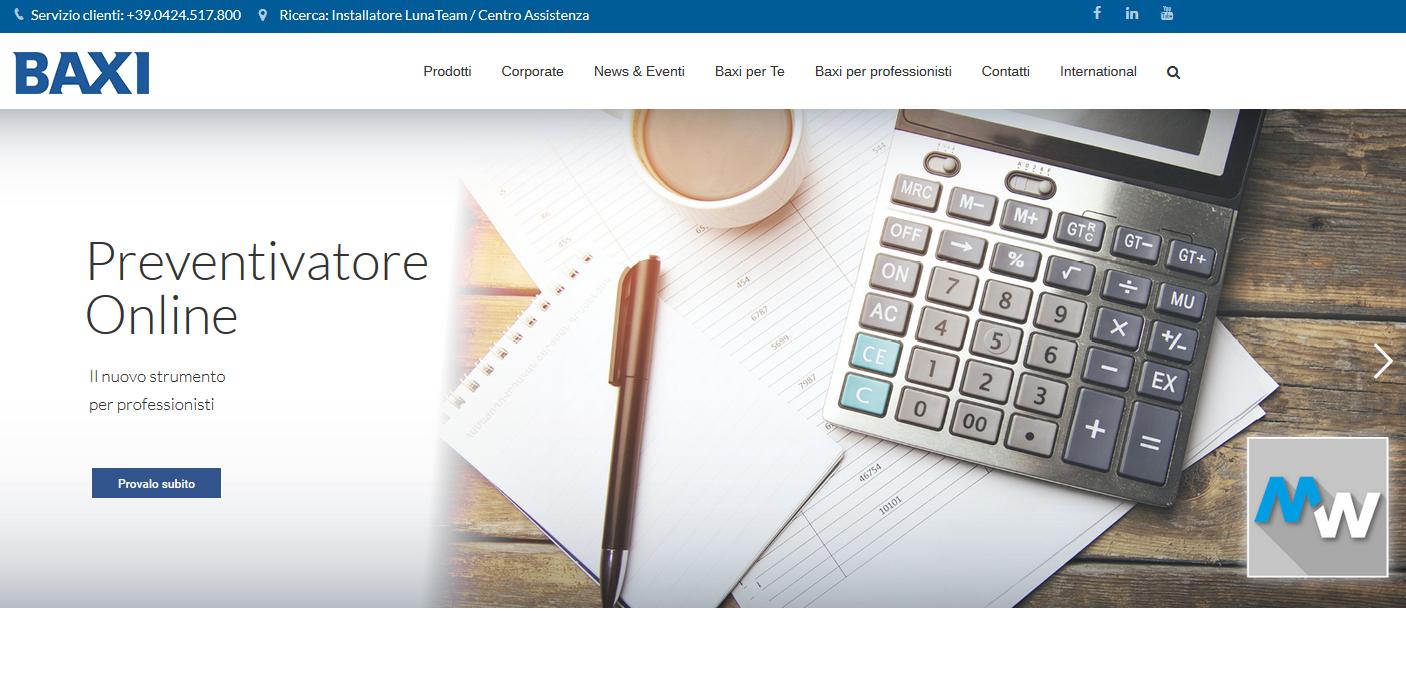 Servizio di preventivazione sul sito baxi.it che consente al progettista di creare in totale autonomia il preventivo. On line sono già caricate 300 “configurazioni tipo” di preventivo. Il progettista potrà salvare il preventivo, personalizzarlo e creare un archivio storico.