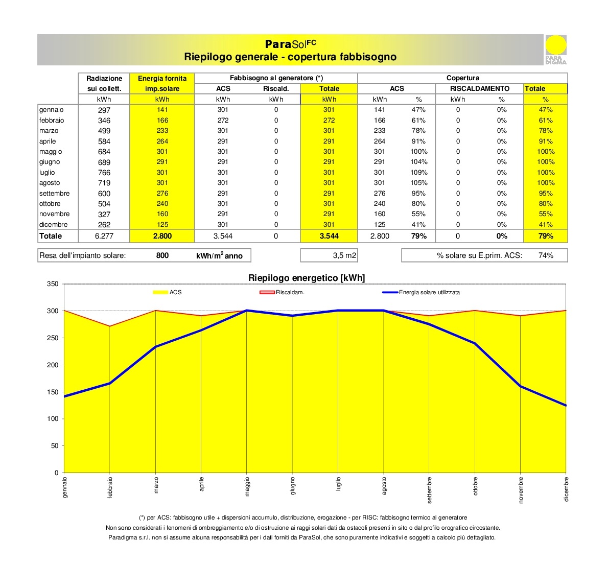 Il foglio di calcolo “ParaSol FC”, dove FC sta per f-chart, permette di stimare in maniera intuitiva la resa solare di un qualsiasi impianto solare Paradigma stimata secondo le norme di calcolo vigenti a livello nazionale.