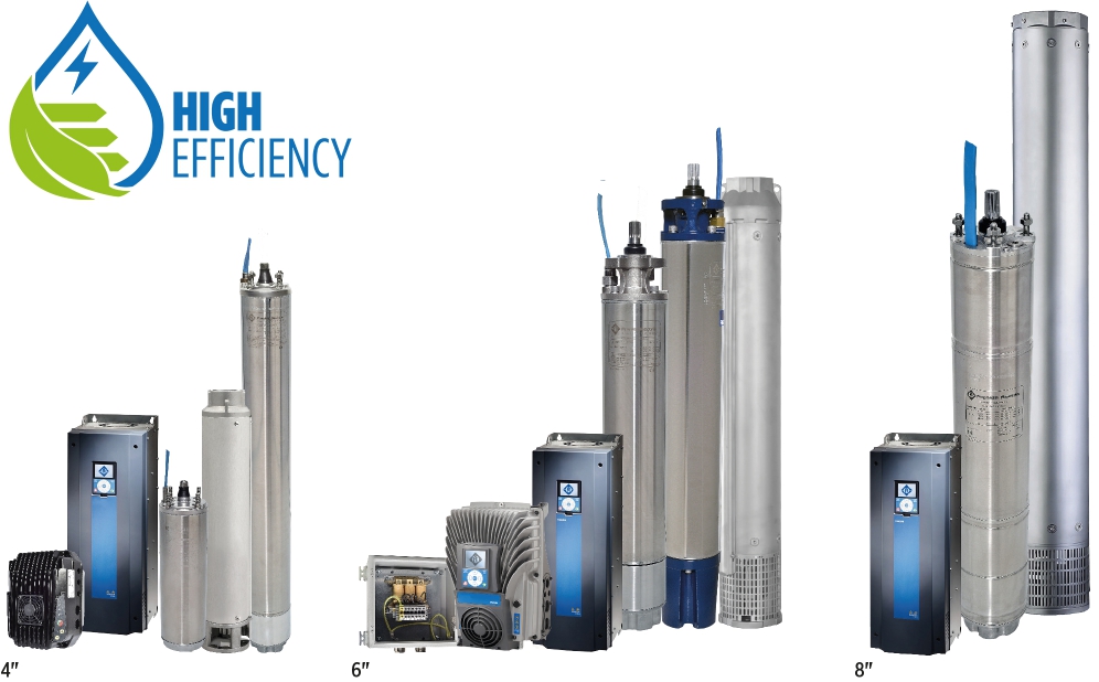 I sistemi sono composti da un motore sommerso sincrono, un convertitore di frequenza (VFD), un filtro in uscita, un Flussostato (per le versioni Solar) e da una pompa sommersa (disponibile separatamente).