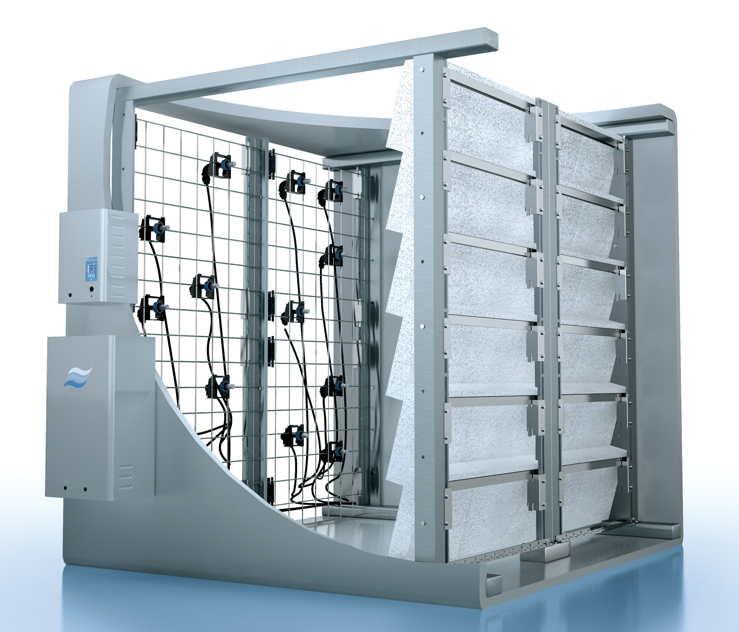 Condair DL è un prodotto ibrido, in cui l’unione fra nebulizzazione e evaporazione permette di ottenere un’efficienza di oltre il 95%. La pompa a bassa pressione da 300 W nebulizza l’acqua osmotizzata che si deposita sul media composto da un setto evaporante in ceramica brevettato Condair.