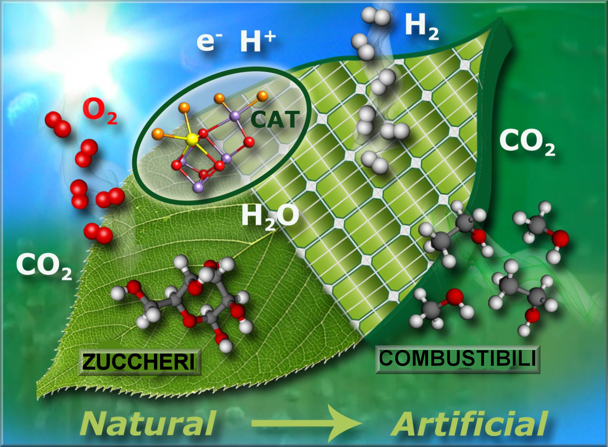 La ricerca sulla fotosintesi artificiale mira quindi alla produzione di combustibili mediante la luce solare, partendo da sostanze molto diffuse come l’acqua e l’anidride carbonica.