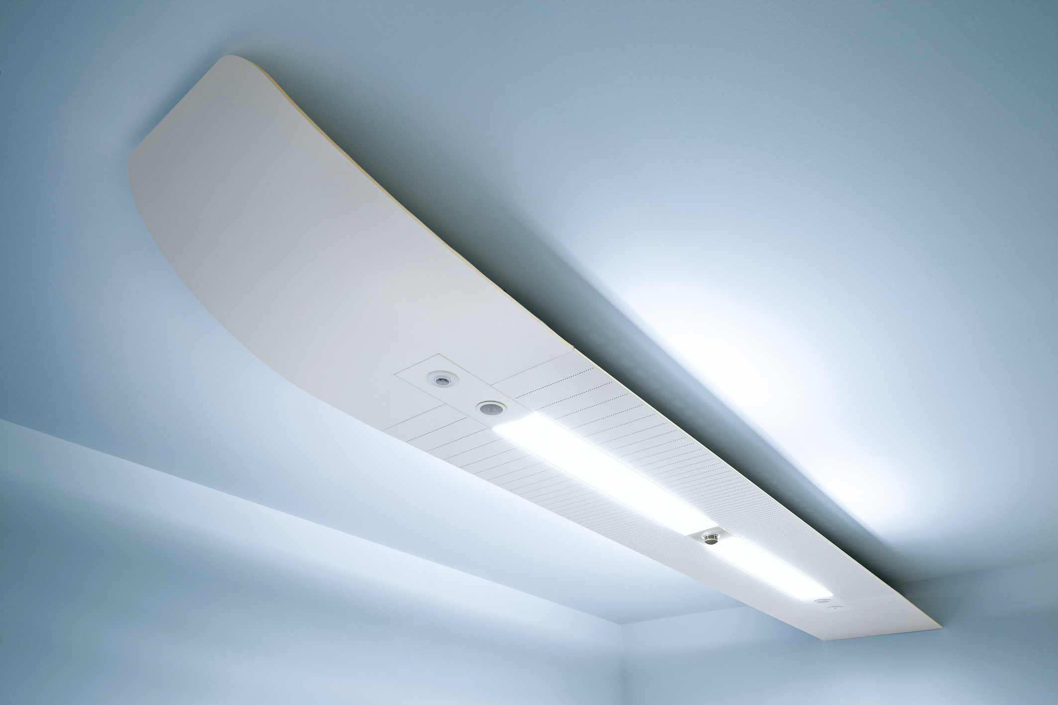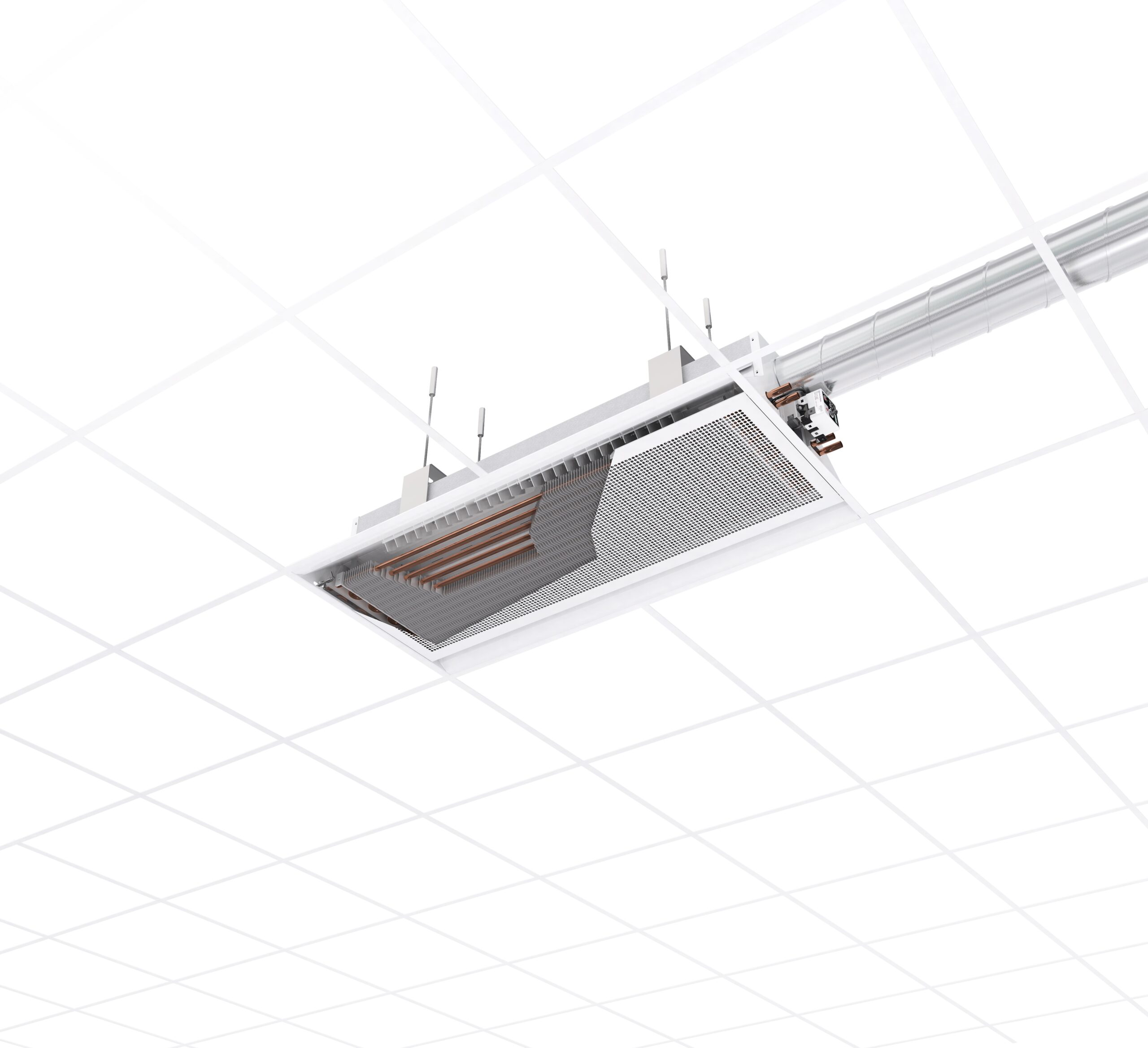 La portata d’aria primaria è modulata abbinando alla trave la tecnologia VAV (portata d’aria variabile), gestita da un sensore di presenza.