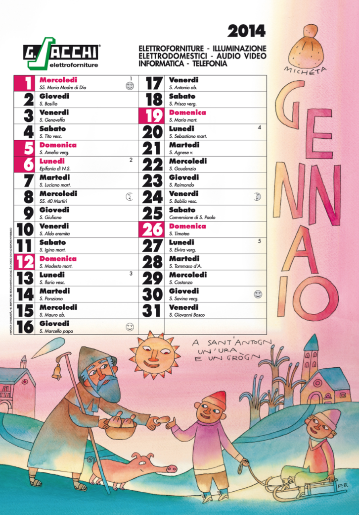 Anche 2014 sarà all’insegna del calendario Sacchi e dei proverbi della Brianza illustrati dal tratto naif e delicato di Filippo Brunello. Più di 70.000 copie ogni anno per un calendario che racconta una Brianza agreste, il lavoro nei campi, il passare delle stagioni fra modernità e tradizione. Il riconosciuto buonsenso di questo mondo viene rivissuto…