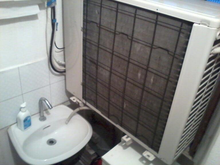 Lavarsi le mani… in compagnia di un’ingombrante unità esterna installata nell’antibagno. Fantastico! A.P. Chiavari (GE)