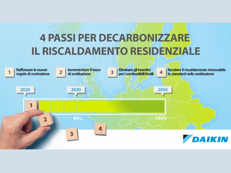 Daikin presenta un piano in 4 fasi per trasformare il riscaldamento e il raffrescamento residenziale per un’Europa più green. L’obiettivo è ridurre le emissioni di CO2 prodotte dagli edifici residenziali aumentando la quota di sistemi di riscaldamento e raffrescamento da fonti rinnovabili al 40% entro il 2030. Questa strategia è in linea con l’obiettivo di…