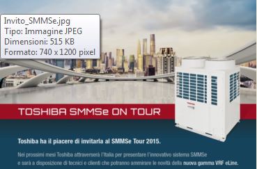 E’ partito il 22 settembre, da Milano ‘’TOSHIBA SMMSe ON TOUR” l’evento organizzato per la presentazione della nuova linea eline per il settore commerciale , prodotti tecnologici dalle prestazioni eccezionali e dall’elevata efficienza energetica. e line è la nuova gamma di sistemi VRF, attualmente caratterizzata da due tipologie di prodotti l’SMMSe e il MiNi SMMSe…