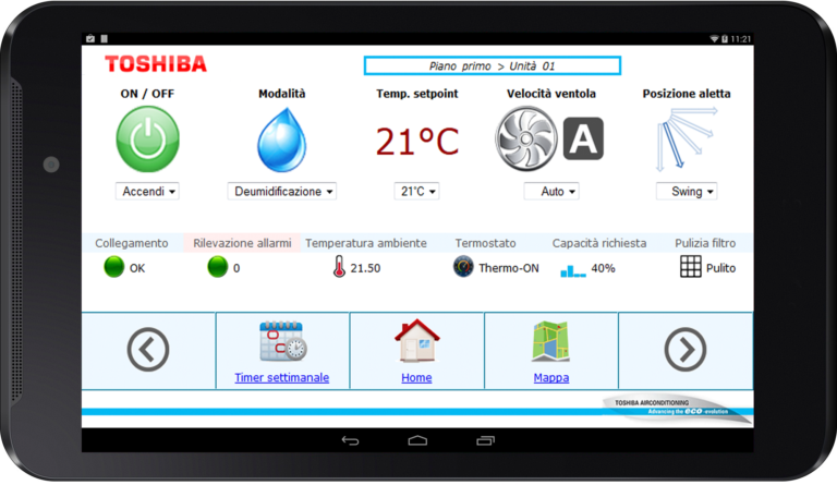 Toshiba Italia Multiclima (Milano) propone iLON Tablet, la novità del 2015 per il controllo centralizzato dei sistemi in pompa di calore VRF, costituito da un tablet touch-screen che comunica in WiFi con l’impianto di climatizzazione. Il sistema iLON Tablet mantiene le peculiarità del sistema iLON, vale a dire la possibilità di avere degli allarmi personalizzati,…