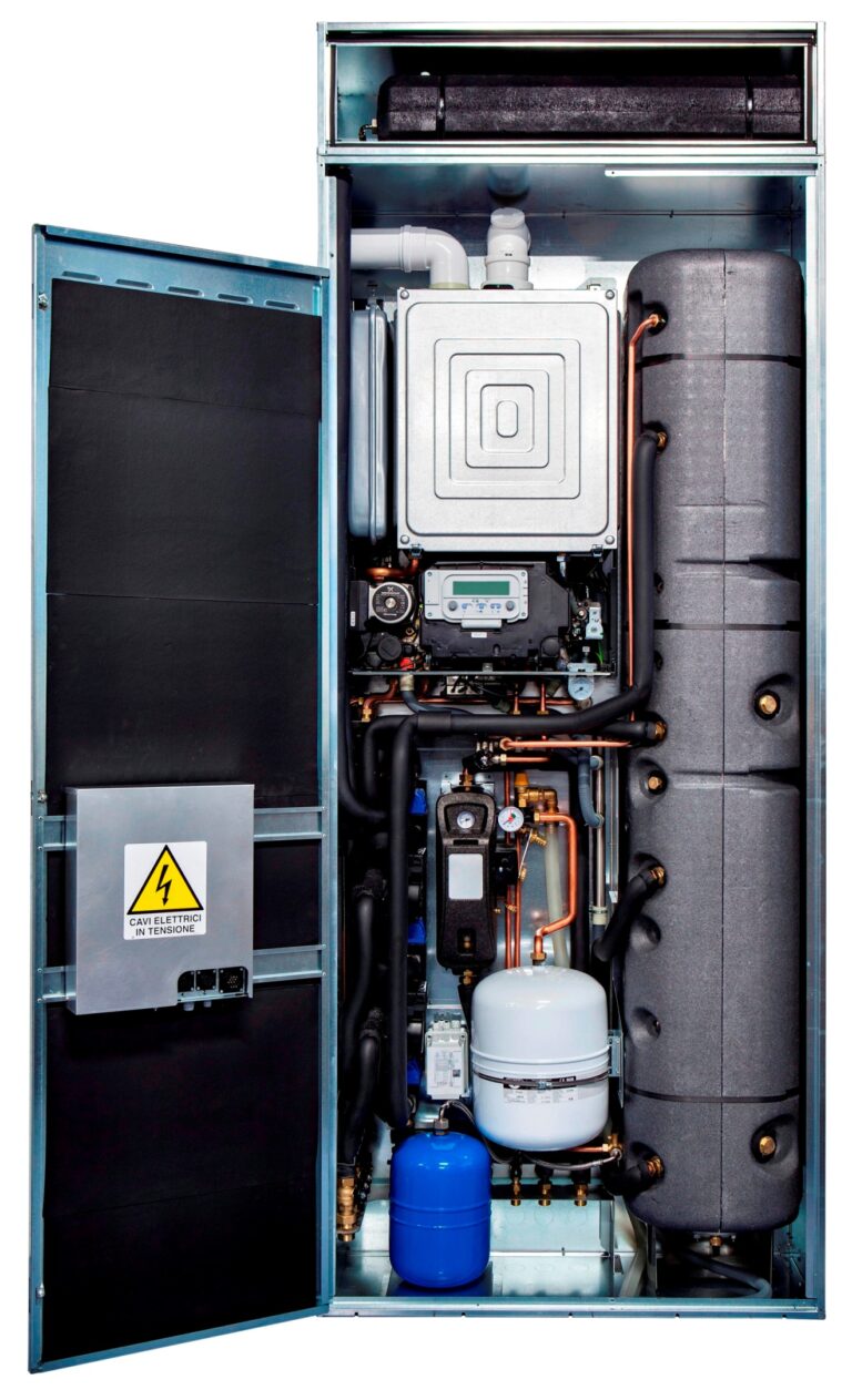 Hybrid Box di Beretta (Lecco) è un sistema ibrido multi energia (gas, elettricità e solare) che integra una caldaia a condensazione combinata, un sistema solare termico a circolazione forzata e una pompa di calore. Il tutto regolato da un controllo elettronico a microprocessore. Il sistema è composto da un generatore premiscelato a condensazione per installazione…