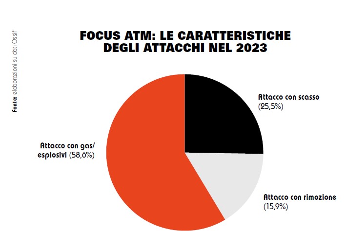 L’ammontare sottratto dalle rapine, infine, è sceso da 55,1 a 1,8 milioni di euro (-97,6%). Per quanto riguarda la tipologia di attacchi agli ATM, i dati Ossif riportano come nel 2023 il 58,6% degli episodi sia avvenuto utilizzando esplosivi, seguiti da attacchi con effrazione o rimozione dell’ATM stesso. Il 47% degli attacchi è avvenuto di sabato e il 78% è stato commesso tra le due e le cinque di notte.