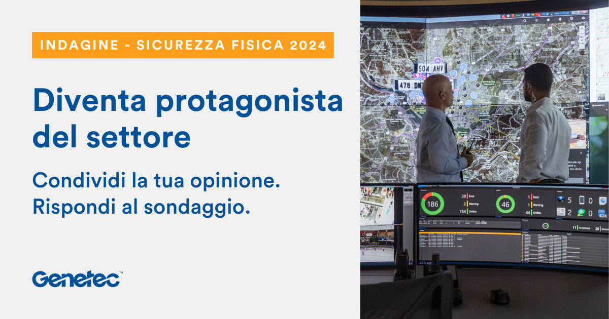 Tutti gli operatori del settore, entro il 15 settembre, possono partecipare al sondaggio di Genetec sulla sicurezza fisica direttamente al seguente link.