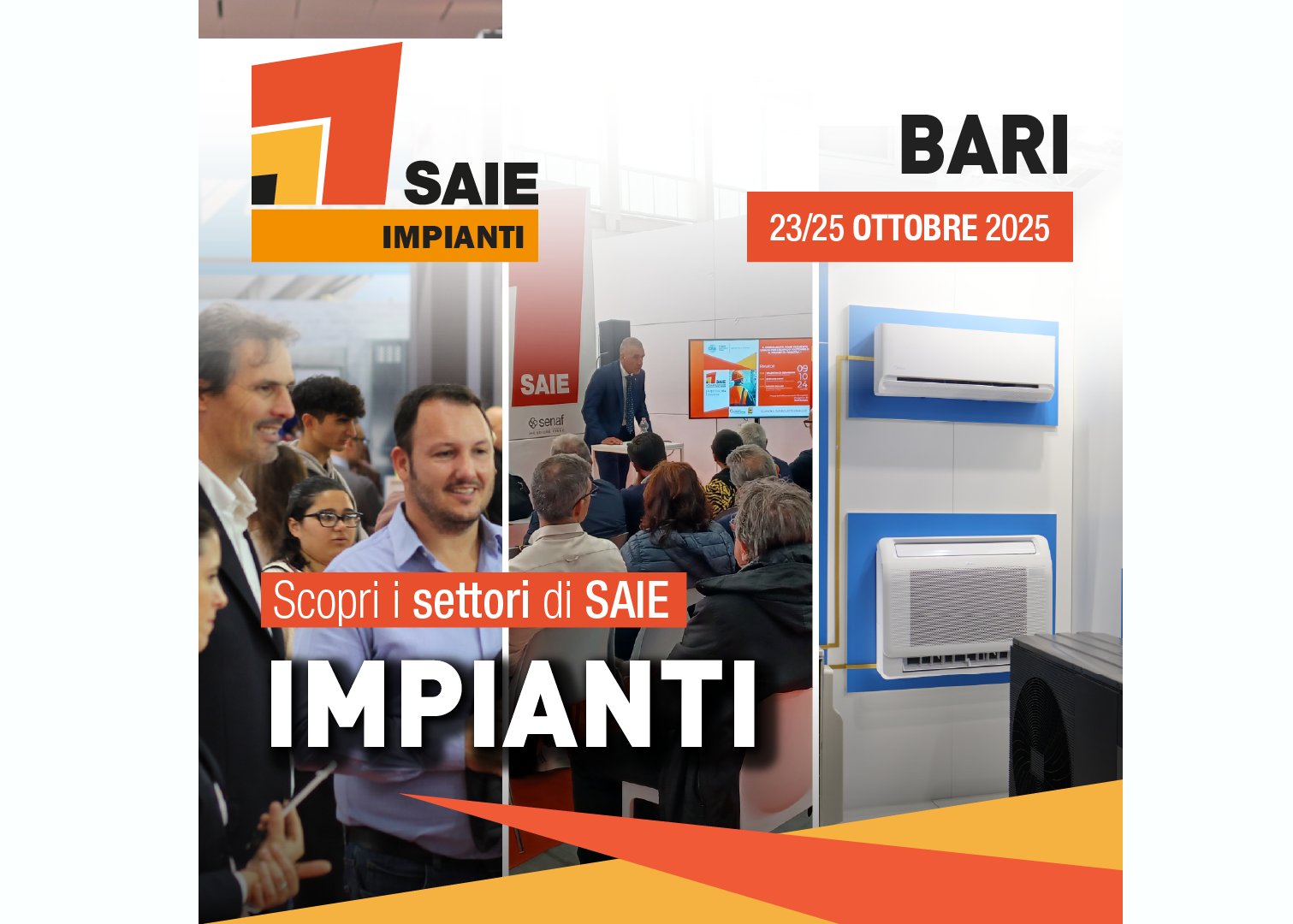 Le informazioni sul settore SAIE Impianti di SAIE Bari 2025 sono disponibili qui, preventivi per valutare la partecipazione possono essere richiesti a info@saiebari.it