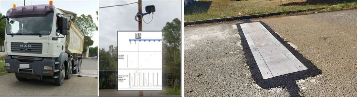 - un sistema meccanico di pesatura dinamica del tipo bending-plate (piastra in deflessione sotto l’azione del carico in transito), equipaggiato con sensori in fibra ottica e allocato in una struttura prefabbricata da installare in scavo su strada. La scelta della tecnologia in fibra ottica è connessa alla possibilità di effettuare il cablaggio in serie di numerosi sensori su un singolo canale, consentendo così misure di deformazione con alta risoluzione spaziale. La predisposizione nella struttura prefabbricata assicura inoltre un’elevata protezione del sistema durante il suo utilizzo;