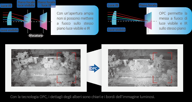 Solitamente non si riesce a mettere a fuoco sullo stesso piano la luce visibile e l’IR utilizzando una telecamera con apertura F1.0.