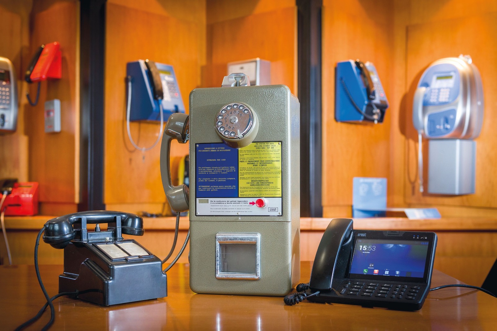 Sono prodotti “iconici” il primo telefono pubblico, introdotto nel 1964 e utilizzato da milioni di italiani per le chiamate urbane e interurbane. Pratico e robusto, con la caratteristica vernice martellata color nocciola, funzionava a gettoni (brevetto Urmet) e contribuì a cambiare radicalmente le abitudini telefoniche delle famiglie italiane. Con il progresso tecnologico, i gettoni telefonici furono progressivamente sostituiti dalle monete e successivamente dalla tessera prepagata, altro brevetto Urmet del 1982, che rappresenta una pietra miliare nella storia delle telecomunicazioni.