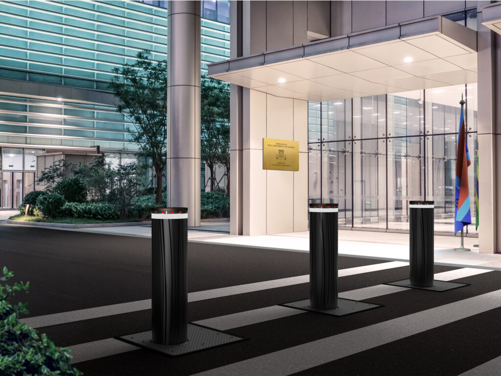Tali resistenti cilindri in acciaio emergono in verticale dal manto stradale, creando una barriera insormontabile per autoveicoli e camion in movimento ad alta velocità, particolarmente indicata per proteggere aeroporti, ospedali, impianti industriali strategici, centri di ricerca, ambasciate, comandi di polizia, basi militari, edifici governativi e siti sensibili in genere.