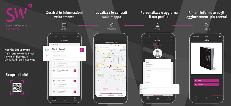 La piattaforma è semplice e veloce da installare grazie all’acquisizione tramite QR-code e registrazione con geo-localizzazione e può essere configurata da remoto tramite l’interfaccia cloud Ksenia SecureWeb o tramite l’App Ksenia Pro.