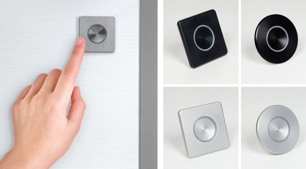 Minimale (solo 6×6 cm) ed elegante grazie alla superficie in alluminio anodizzato, si integra con qualsiasi porta blindata dall’espressione contemporanea. È disponibile in due forme (tondo o quadrato) e altrettanti colori (nero opaco e grigio silver), nonché dotato di supporto rotondo per semplificare il montaggio.