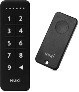 Nuki Keypad è un tastierino numerico wireless da fissare sulla parte esterna della porta blindata o della parete con biadesivo o viti. Si alimenta con due batterie a bottone CR2032, utilizza un collegamento Bluetooth 5.0 ed è certificato IP65. Può memorizzare fino a 99 codici di accesso (di 6 cifre) con permessi impostabili da app. In aggiunta alla sola tastiera sono disponibili anche due versioni dotate di lettore di impronte digitali: Nuki Keypad 2.0 e Nuki Keypad 2.0 PRO. Questi due dispositivi si distinguono l’uno dall’altro per la modalità di installazione e per l’estetica.
