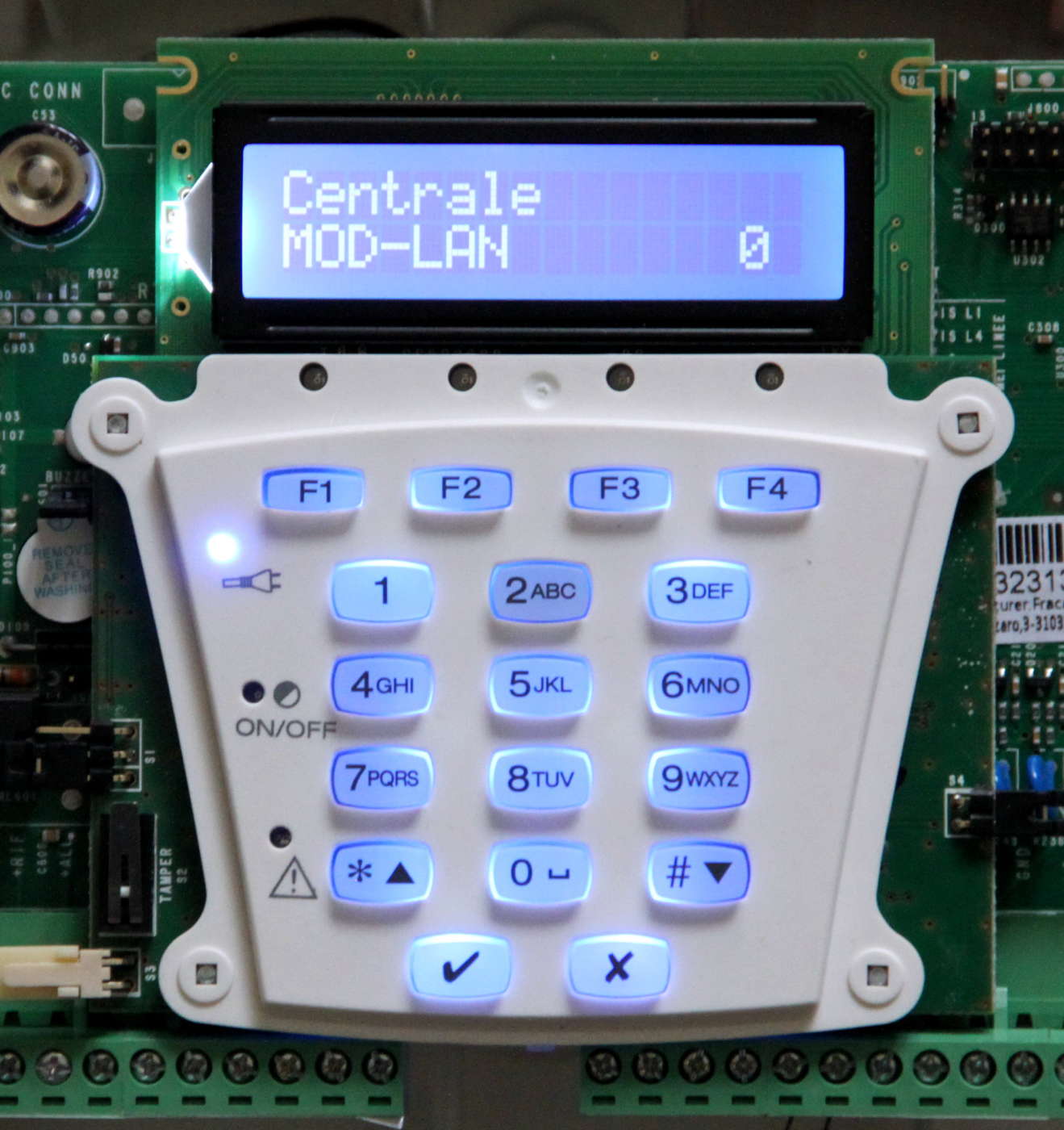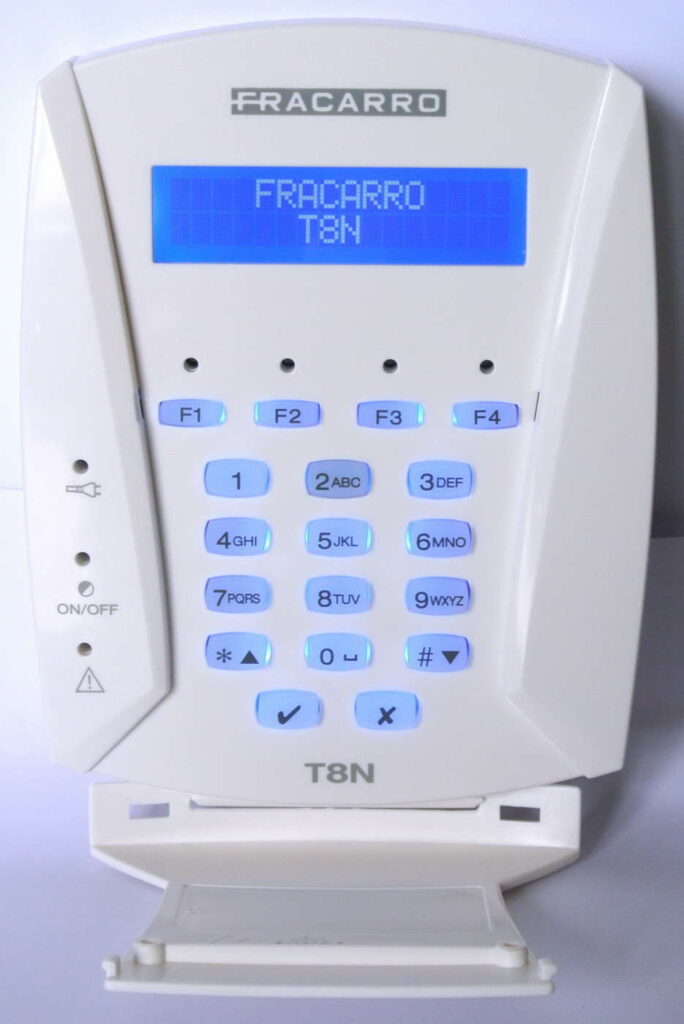 Il dispositivo integra sia la tastiera retroilluminata, sia il display LCD, utili a gestire e programmare le varie funzionalità in alternativa alle tastiere esterne T8N (fino a un massimo di 7), al PC con il Programmer Sicurezza e il modulo MOD-USB, all’app iDefender (che viene approfondita più avanti) e alle chiavi elettroniche a transponder (massimo 64 chiavi e 8 inseritori).