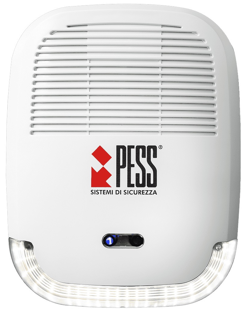 - la sirena Urania (P1500100) da 105 dBA con indicazione ottica e acustica di inserimento/disinserimento, pannello metallico antischiuma e batteria al litio 3 V 13 Ah in dotazione;