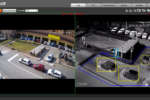 Così è possibile vedere come i veicoli all’interno dell’area delimitata vengano rilevati (riquadri gialli) ma non considerati un pericolo. I pedoni (riquadri azzurri) vengonorilevati ma non generano allarmi finché si trovano al sicuro sul marciapiede, al di fuori della zona delimitata (blu).