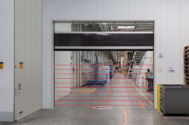 Come tutti i portoni a scorrimento rapido Hörmann, anche TurboLux è dotato, di serie, di una barriera di sicurezza a raggi infrarossi con una distanza tra i raggi di soli 45 mm; questa peculiarità consente di rilevare in modo affidabile gli ostacoli fino a un’altezza di apertura massima di 2500 mm. Se viene rilevata la presenza di una persona o di un oggetto nell’area del portone, la barriera a raggi infrarossi impedisce una collisione, prima che si verifichi, e il portone viene frenato delicatamente e con poca usura grazie alla funzione soft-stop.