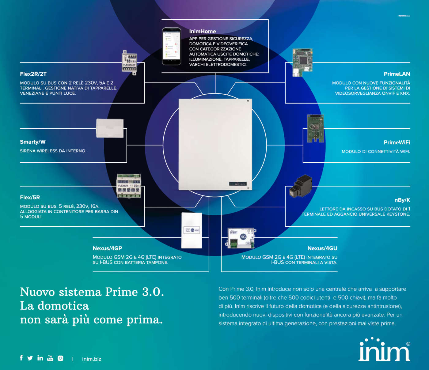 La nuova centrale Prime 500L, pensata da INIM per impianti di media e grande dimensione, incrementa le sue prestazioni domotiche grazie a otto nuovi dispositivi.