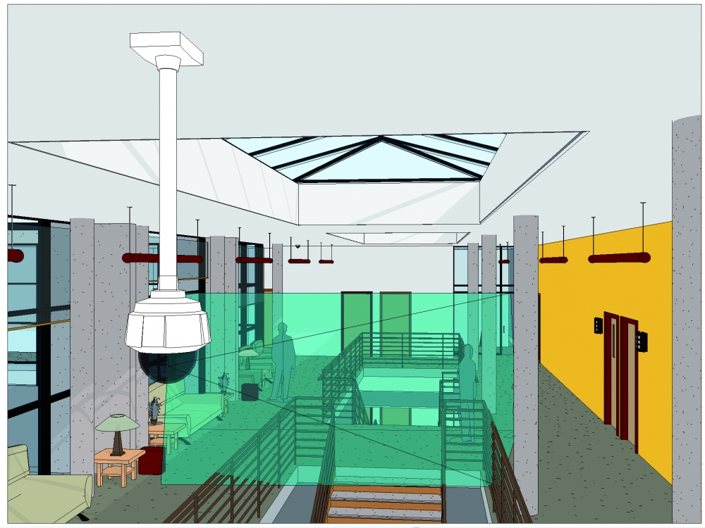 Il software consente di determinare con precisione in che modo le telecamere si inseriscono nel layout dell’edificio e di stabilire se le viste sono ostruite da colonne o pareti, in modo da ridurre inattesi punti ciechi.
