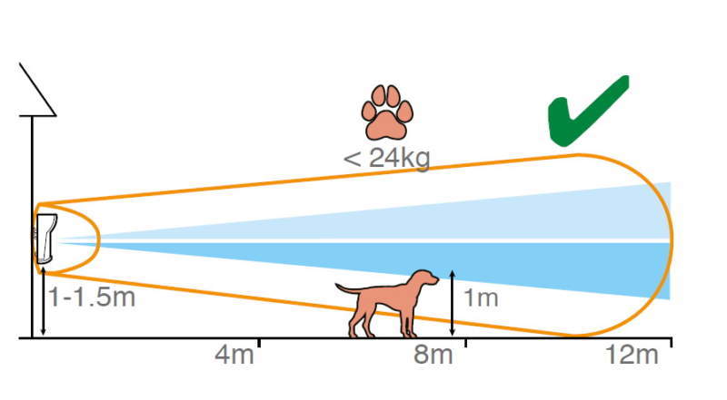 L’XDL12TT-AM appartiene alla categoria dei rilevatori volumetrici “low-mounted” e può quindi essere installato a un’altezza compresa tra 1 e 1,5 metri. Se posizionato a 1,2 metri, può garantire una copertura fino a 12 metri di distanza in un raggio di 90 gradi. Grazie a un’apposita staffa e al sistema anti-interferenza appena visto, è possibile montare un rilevatore di schiena all’altro garantendo, nel complesso, una distanza di copertura di 24 metri e una copertura volumetrica a 180°. Il rilevatore può anche fornire una copertura a tenda (17°) a seconda delle dimensioni e della forma dell’area da proteggere. Le lenti sono mascherabili per limitare l’area di copertura e ridurre così le interferenze esterne in caso di installazioni in prossimità di una strada o un sentiero, un vialetto o un garage.