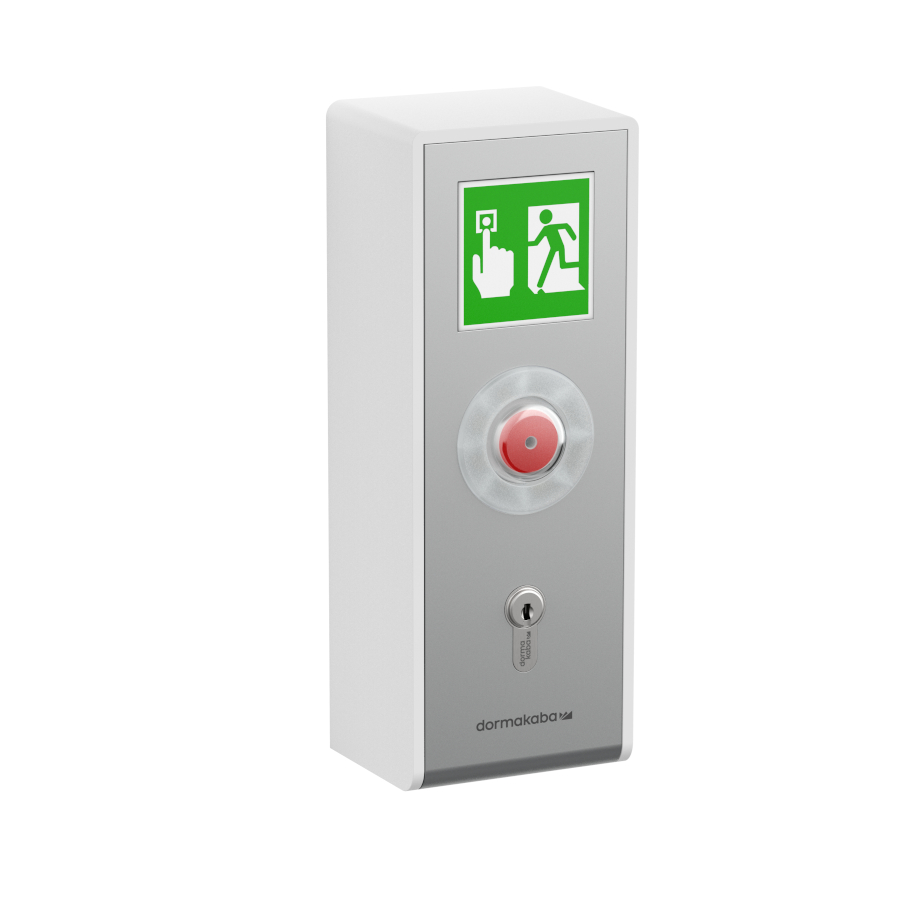 In caso di allarme o pericolo, una porta di fuga singola o un gruppo di porte possono essere sbloccati tramite un pulsante di emergenza o un sistema di allarme esterno (per esempio, un rilevatore di fumo). L’allarme viene segnalato visivamente e acusticamente e può essere inoltrato a un sistema di gestione dell’edificio superiore.