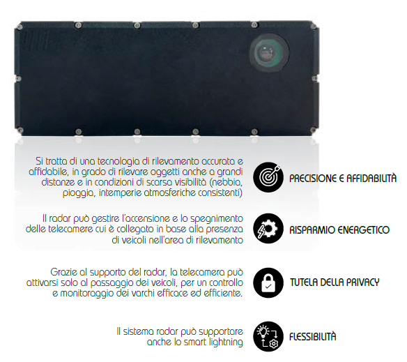 Un altro aspetto da mettere in evidenza è che con il sistema radar ITR-3800 si può garantire anche la privacy degli utenti, facendo in modo che l’impianto TVCC si attivi solo al passaggio dei veicoli.