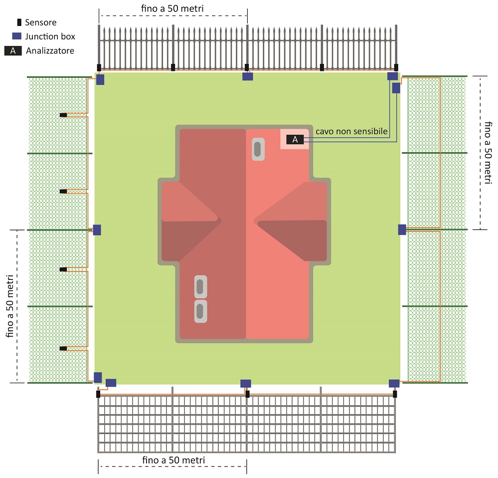 La tecnologia passiva utilizzata assicura prestazioni elevate, con consumi di energia ridotti e immunità da scariche elettriche, come ad esempio fulmini, che tipicamente creano problemi in presenza di tecnologie attive installate su recinzioni metalliche.