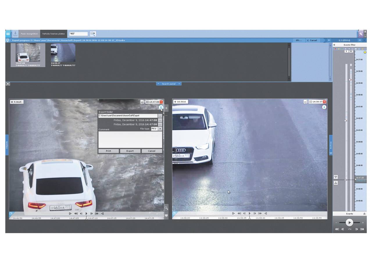 AxxonNext include un algoritmo di ricerca facciale e di riconoscimento delle targhe che rileva automaticamente un volto o una targa presenti nel campo visivo o all’interno di un flusso video proveniente da una o più telecamere.