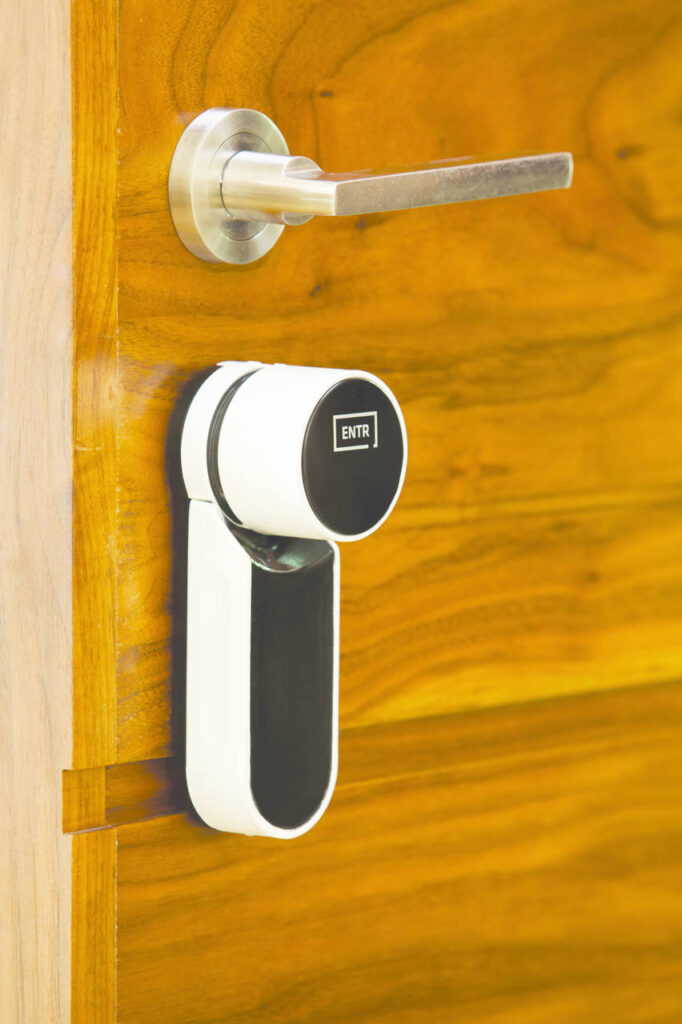 Entr può essere installata su porte di qualsiasi tipo e dimensione: è sufficiente rimuovere il vecchio cilindro della porta e installare la serratura Entr per ottenere un accesso sicuro e controllato alla propria casa.
